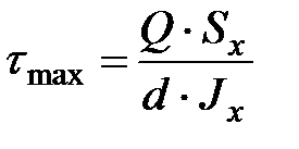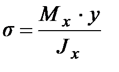 где Мх – изгибающий момент в рассматриваемом сечении, Нсм; Jх – осевой момент инерции поперечного сечения относительно нейтральной оси x, см4; у – расстояние от нейтральной оси до слоя, в котором определяется нормальное напряжение, см. Теоретическое значение для τmax находится по формуле Д.И. Журавского