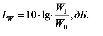 Шумы и звуки создаются волнами, возникающими при сжатии и расширении, в воздухе, воздуховодах, системе гидравлики, в жидкостях, передвигающихся по трубам в структуре здания. Основным параметром шума является его частота. Человек способен различать звуки в пределах от 20 Гц до 20000 Гц. Обычно выделяют три диапазона частот: низкие, средние и высокие. Диапазон низких частот включает частоты от 20 до 200 Гц, средних — от 250 до 1000 Гц и высоких — до 8000 Гц и выше. При нормальных условиях работы малых и средних систем вентиляции и кондиционирования воздуха рассмотрению подлежит узкий спектр частот, как правило, от 63 до 4000 Гц, значительно реже до 8000 Гц. Полоса частот подразделяется на восемь стандартных групп волн, называемых «восьмеричными группами». Каждая группа определяется средней для нее частотой волн: 63 Гц, 125 Гц, 250 Гц, 500 Гц, 1000 Гц, 2000 Гц, 4000 Гц и 8000 Гц. Подразделение на «восьмеричные» группы помогает представить «звуковой спектр» шума с распределением звуковой энергии по разным частотам. Единицейизмерения шума является— децибел (дБ). Показатели в дБ характеризуют т.н. «звуковой уровень» шума. Уровень мощности звука Lw выраженный в дБ, представляет собой отношение мощности звука вблизи источника (W1, Вт) к нулевому уровню, за который принята мощность звука W0 = 10 -12 Вт, и может быть определен по формуле: