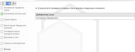 Для того, чтобы заказать услугу «Антивирусная защита» необходимо зайти в Закладку Операции → Изменение списка услуг → выбрать желаемый Антивирусный продукт и нажать кнопку Ок.