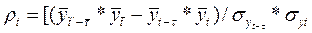 Осы өсіңкі қатар мен оның τ рет ығысқан қатары (лаг) арасындағы автокорреляция коэффициенттерінің тізбектері коррелограмма - автокорреляциялық функция деп аталады. Коррелограмма көмегімен лаг мәнін бағалауға болады. Бір деңгейдің басқа деңгейлерге тәуелділігі регрессия теңдеуінің көмегімен сандық түрде бағалануын айтамыз. Регрессияның сызықтық жұп теңдеуі (бірінші деңгейлі теңдеу) келесі түрде болады: