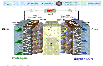 Хабаровск The proton exchange membrane fuel cell (PEMFC) is an electrochemical converter which produces electricity and heat from hydrogen and oxygen, with water as the only by product during operation (Figure 1). With its fast starting at room temperature, its versatility, its high power density and efficiency, it is considered as a promising energy source as an alternative to fossil fuels, for use in portable, stationary and transport applications [1].