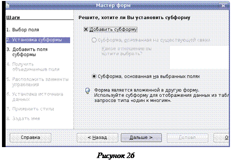 Шаг 2. Выбираем добавление субформы (Рисунок 26)
