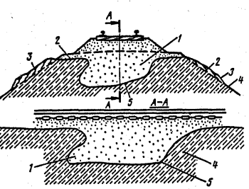 ВИДЫ ДЕФОРМАЦИЙ ЗЕМЛЯНОГО ПОЛОТНА В начальный период после строительства земляного полотна наблюдается деформация в виде оседания основной площадки, выпучивание откосов из-за недостаточного уплотнения грунта, оползание откосов. В зимний период могут наблюдаться пучины в виде горбов, а так же пучинные впадины. Пучины бывают коренные, расположенные в теле земляного полотна и балластные. Балластные пучины возникают при первых заморозках и имеют незначительную высоту горба 20-30 мм. Весной быстро исчезают. Коренные пучины возникают по мере промерзания грунта и бывают высотой горба до 150 мм.