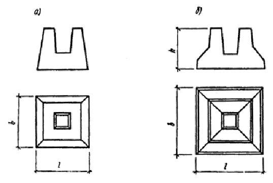 Черт. 3. Сборные железобетонные фундаменты а - пирамидальные; б - с уширением плитной части