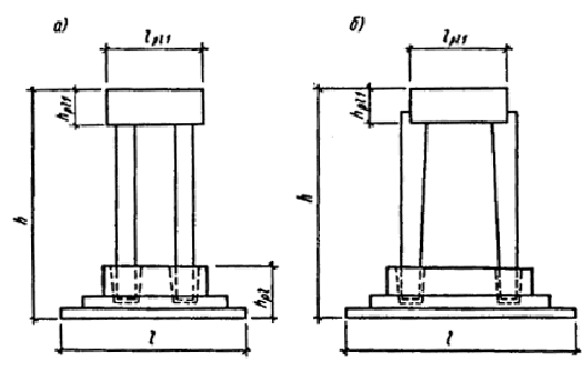 Черт. 4. Сборно-монолитные фундаменты с подколонниками рамного типа