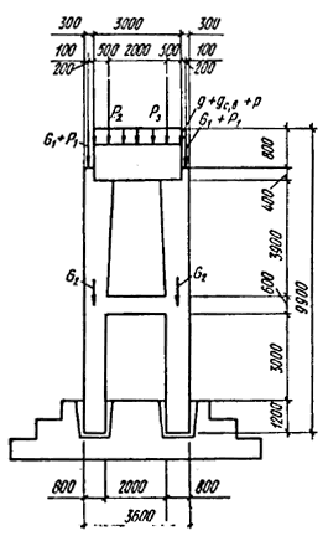 Черт. 37. Расчетная схема и нагрузки на сборный подколонник Таблица 13
