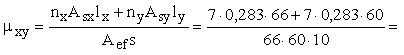РАСЧЕТ ПЛИТНОЙ ЧАСТИ ФУНДАМЕНТА НА ПРОДАВЛИВАНИЕ Рабочую высоту плитной части h0,pl определяем по формуле (9): r = gb2 Rbt / pmax = 1,1 • 0,75/0,454 = 1,82, cl = 0,5 (4,5 - 1,2) = 1,65 м, cb = 0,5 (3,6 - 0,9) = 1,35 м. Вычисляем: h0,pl = -0,5 × 0,9 + Принимаем hpl = 0,9 м с тремя ступенями высотой по 0,3 м; h0,pl = 0,85 м. Размеры ступеней определим по прил. 3 (принимая c1 = c1¢ и с2 = с2¢). Учитывая, что таблица составлена при gb2 = 1, а в нашем случае gb2 = 1,1, расчетные значения рmax снижаем: px,max = 0,454/1,1 = 0,413 МПа (4,13 кгс/см2); рy,max = 0,42/1,1 = 0,382 МПа (3,82 кгс/см2). Вылет ступеней вдоль оси х: для 1-й ступени при h1 = 0,3 м, рх = 0,413 МПа (4,13 кгс/см2), b = 3,6 м находим c3 = 0,6 м при р = 0,45 МПа (4,5 кгс/см2) > 0,413 МПа (4,13 кгс/см2); для 2-й ступени при h1 + h2 = 0,6 м и b = 3,6 м находим c2 = 1,05 м при р = 0,56 МПа (5,6 кгс/см2) > 0,413 МПа (4,13 кгс/см2); c2 = 1,2 м при p = 0,38 МПа < 0,413 МПа - то есть вылет, равный 1,2 м, не проходит; c1 = 1,65 - прочность на продавливание проверена при определении h0,pl. Вылет ступеней вдоль оси у: с3¢ = 0,6 м при р = 0,475 МПа (4,75 кгс/см2) > 0,382 МПа (3,82 кгс/см2); с2¢ = 1,05 м; c1¢ = 1,35 м. Моменты, действующие по граням ступеней в направлении оси х, определим по формуле (44) N = 4,8 МН (480 тc), Мx = 1,92 МН×м (192 тс×м), еx = 0,4 м, l = 4,5м. В сечении 1-1: c1-1 = 1,65 м; в сечении 2-2: c2-2 = 1,05м; в сечении 3-3: с3-3 = 0,6 м; Определим площадь сечения арматуры на всю ширину фундамента по формулам (42), (43). В сечении 1-1: a0 = 2,04 / 8,5 • 1,5 • 0,8552 = 0,219, по табл. 18 «Пособия по проектированию бетонных и железобетонных конструкцийиз тяжелых и легких бетонов без предварительного напряжения арматуры» n = 0,875; Аsl1 = 2,04 × 104/365 × 0,875 × 0,855 = 74,7 см2; в сечении 2-2: a0 = 0,853/8,5 × 2,4 × 0,5552 = 0,136; n = 0,9267; Asl2 = 0,853 × 104/365 × 0,9267 × 0,555 = 45,4 см2; в сечении 3- 3: a0 = 0,285/8,5 × 3,6 × 0,2552 = 0,143; n = 0,9225; Asl3 = 0,285 × 104/365 × 0,922 × 0,255 = 33,2 см2. Определяющим является число арматуры по грани подколонника. Принимаем 18Æ25 A-III (88,4 см2). Моменты, действующие по граням ступеней в направлении оси у, определим по формуле (44), заменяя величины Мx, e0,x, l соответственно на Му, e0,y, b N = 4,8 МН (480 тс), Му = 1,2 МН×м (120 тс×м), е0,y = 0,25 м; b = 3,6 м. В сечении 1-1: c1-1¢ = 1,35 м; в сечении 2-2: c2-2¢ = 1,05 м; в сечении 3-3: с3-3¢ = 0,6 м; Определим площадь сечения арматуры на всю длину фундамента по формуле (43). В сечении 1¢ - 1': a0 = 1,59/8,5 × 2,4 × 0,8352 = 0,112; n = 0,94; Asb = 1,59 × 104/365 × 0,94 × 0,835 = 55,5 см2; в сечении 2¢ - 2': a0 = 0,983/8,5 × 3,3 × 0,5352 = 0,123; n = 0,935; Asb2 = 0,983 × 104/365 × 0,935 × 0,535 = 53,8 см2; в сечении 3¢ - 3': a0 = 0,329/8,5 × 4,5 × 0,2352 = 0,156; n = 0,915; Asb3 = 0,329 × 104/365 × 0,915 × 0,235 = 41,9 см2. Определяющим является число арматуры по грани подколонника. Принимаем 22Æ18 A-III (56 см2). Проверяем подколонник как бетонный элемент с помощью прил. 4. При еx = 0,40 м + hcf/30 = 0,4 + 1,2/30 = 0,44 м < 0,45lcf = 0,54 м и eу = 0,25 м + bcf/30 = 0,28 м > bcf/6 = 0,15 м — бетонное сечение подколонника рассчитывается по 4-й форме сжатой зоны (прил. 4) lcf = 1,2 м, bcf = 0,9 м, x = 3(1,2/2 - 0,44) = 0,48 м, у = 3(0,9/2 - 0,28) = 0,51 м, Аb = (0,48 × 0,51)/2 = 0,12 м2. Проверяем прочность бетона из условия N £ Rb Ab с учетом коэффициента условий работы согласно табл. 15 СНиП 2.03.01-84 для бетонных конструкций gb9 = 0,9 0,9 × 8,5 × 0,12 = 0,92 MH (92 тc) < N = 4,8 MH (480 тc). Следовательно, подколонник должен быть выполнен железобетонным с постановкой арматуры по расчету железобетонных элементов. Пример 3. Расчет сборного железобетонного подколонника рамного типа для здания с подвалом Дано: кран грузоподъемностью Q = 1230 кН (125 тс) и полезной нагрузкой на перекрытии на отм. ±0,00р = 98 кПа (10 тс/м2). Расчетная схема и нагрузки на сборный подколонник указаны на черт. 37 и в табл. 13.