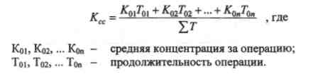 3.3.3. По результатам средних концентраций за операцию (К0) и длительности операции (То) рассчитывают среднесменную концентрацию (Ксс) как средневзвешенную величину за смену: