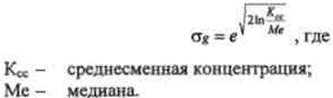 Определяем статистические показатели, характеризующие процесс загрязнения воздуха рабочей зоны в течение смены: минимальную концентрацию за смену (Кмин); максимальную концентрацию за смену (Кмакс); медиану (Me); стандартное геометрическое отклонение (σg).