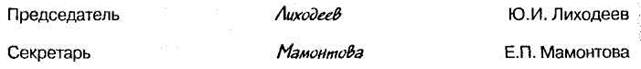 Председатель — Лиходеев Ю.И. Секретарь — Мамонтова Е.П.