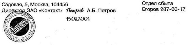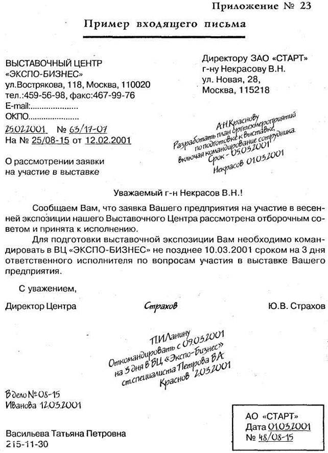 Пример исходящего письма