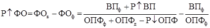 где Р↑ФО - резерв фондоотдачи; ФОв, ФОф - возможный и фактический уровень фондоотдачи соответственно; Р↑ВП - резерв увеличения производства продукции; ОПФф - дополнительная сумма ОПФ, необходимая для освоения резервов увеличения выпуска продукции; Р↓ОПФ - резерв сокращения средних остатков основных производственных фондов за счет реализации и сдачи в аренду ненадобных и списания непригодных.