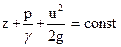 Так как сечения I и II взяты произвольно, то уравнение Бернулли можно записать также в виде