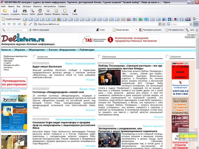 Рисунок 1. Информационно-маркетинговая компания РСофт. 2. Сайт "Деловая информация" принадлежит Группе деловых изданий "Лучший выбор" и представляет информацию по торговому оборудованию, ресторанному бизнеса, практике торговли. Сайт содержит разделы: Новости, Выставки и другие профильные мероприятия, Наши издания - журналы "Торговое обрудование. Лучший выбор", "Современный бизнес. Ресторан", "Каталог оборудования", Полезные советы, Партнеры (полезные ссылки), Контакты. В разделах организован быстрый поиск информации. Также на сайте Вы можете оформить подписку на наши издания, узнать расценки на размещение рекламы, технические требования к модулям и график выхода журналов. Сайт находится по адресу http://www.delinform.ru