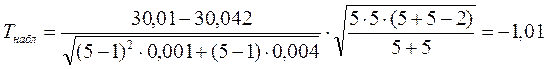 Предположим, в качестве нулевой гипотезы, что настроечный размер станка не изменился, то есть выборочные средние Вычислим наблюдаемое значение критерия по формуле: