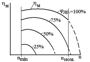 Рис. 2.3. Внешняя (hр.=100%) и частичные (hр.<100%) скоростные характеристики топливоподачи.