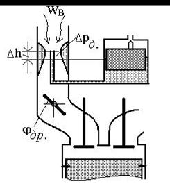 Рис. 2.13. Схема элементарного карбюратора: (Wв. – скорость воздуха на входе в диффузор, которая изменяется в диффузоре в соответствии с его конструктивными признаками, и определяет падение давления