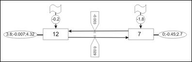 Моделируемая ситуация. Фармацевтическая компания производит два вида новых сверхэффективных лекарственных препаратов от психических расстройств: препарат А и препарат Б. Данные препараты различаются по продолжительности фармакологического действия и цене. Фармакологическое действие препарата А короче, а его производство значительно дешевле, чем препарата Б. На рынках сбыта конкурентов у этой продукции пока нет. Требуется оценить спрос на товар для планирования объёмов производства, если известны некоторые данные по динамике покупок после продажи первых партий. Постановка задачи. После исследования рыночной ситуации и динамики продаж стало известно, что за неделю на одну проданную партию препарата А приходится повышение спроса в 3,8 раз. При этом снижение спроса за счёт побочных эффектов на одну партию товара имеет коэффициент 0,007, а долгосрочный заказ на экспорт обеспечивает дополнительный спрос на 4,32 партии в неделю. На препарат Б происходит постоянное повышение спроса на 2,7 партии в неделю. За счёт наличия побочных эффектов при приёме препарата наблюдается снижение спроса с коэффициентом 0,45. На спрос влияет и взаимная рыночная конкуренция товаров. Для препарата А: – снижение спроса от конкуренции с более эффективным продуктом Б на единицу товара – 0,003 партии; – отсутствие сертификата качества международного образца снижает спрос с постоянной скоростью 0,2 партии за неделю. Для препарата Б: – повышение спроса от конкуренции с более дешевым и опасным препаратом А на единицу товара – 0,029 партии; – отрицательный эффект от появления на рынке подделок (контрафакта) уменьшает спрос на 1,8 партии еженедельно. Осуществите моделирование на следующие 60 недель, если известно, что начальный спрос на препарат А – 12 партий в неделю, на препарат Б – 7. Предложите недельную норму производства препаратов. Решение. Для начала выявим параметр исследования в модели – это объём спроса на продукцию. Следовательно, моделироваться будет покупательская активность на каждый из двух видов товара, представленных в виде отдельных подсистем. Составим диаграмму процессов. Из условия видно, что все факторы можно разделить на внутренние (внутрипроизводственные) и внешние (рыночная среда). Они описаны отдельно в первой и второй части условия соответственно. Будем рассматривать их параллельно с составлением диаграммы процессов. Так как выделены две подсистемы, то диаграмма будет иметь два блока типа «накопитель» (прямоугольник на рис. 12) с вписанными в них начальными значениями.