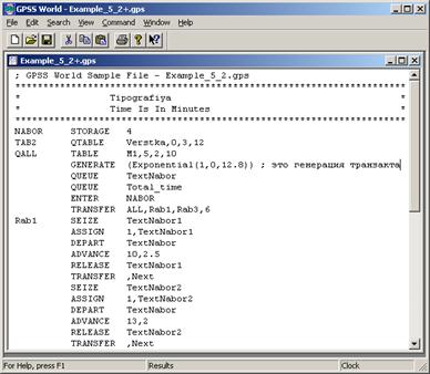 Рис. 31. Окно текстового редактора в системе GPSS World