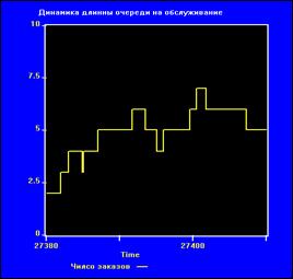Рис. 36. График динамики длины очереди транзактов Вывод: Мастера полностью загружены работой, при этом они справляются с потоком заказов. Следовательно, система сбалансирована по нагрузке и в совершенствовании не нуждается.