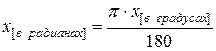 Решение. Определим по графику ординаты для заданных значений абсциссы и запишем их в таблицу. В технике обычно углы измеряются в градусах, но в математике удобнее использовать радианы – для упрощения формул. Кроме того, большинство компьютерных программ общего назначения в тригонометрических функциях по умолчанию используют радианы в качестве меры угла. Поэтому значения x в таблице имеет смысл записать в радианах по формуле