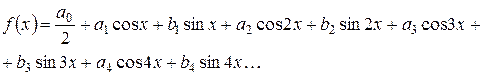 По формулам (12,13) заполним два последних столбца таблицы 6. Подставим найденные коэффициенты в формулу (14) и получим приближенное разложение в ряд Фурье для нашей осциллограммы