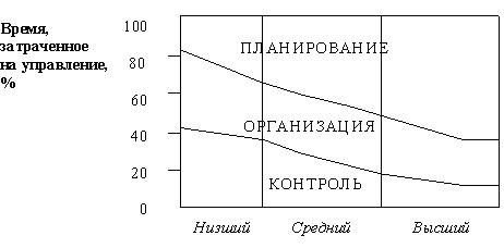 Рис. 1. Соотношение затрат времени по уровням и функциям управления