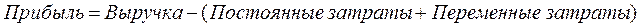 Прибыль – это основной финансовый результат работы предприятия, равный выручке за минусом суммы постоянных и переменных затрат.