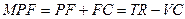 Введём обозначения: P (price) – Цена (в денежных единицах). Q (quantity) – Объём продаж (в денежных единицах). TR (total revenue) – Доход (в денежных единицах). TC (total cost) – Общие издержки (в денежных единицах). ATC (average total cost) – Средние общие издержки (в денежных единицах). FC (fixed cost) – Постоянные издержки (в денежных единицах). AFC (average fixed cost) – Средние постоянные издержки (в денежных единицах). VC (variety cost) – Переменные издержки (в денежных единицах). AVC (average variety cost) – Средние переменные издержки (в денежных единицах). PF (profit) – Прибыль (в денежных единицах). MPF (marginal profit) – Маржинальная прибыль (в денежных единицах).