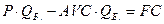 Область 1 на рис. 6.3 – это область прибыли. Область 2на рис. 6.3 – это область убытков. 1) Точка пересечения линий дохода и общих издержек и соответствующий ей объём производства QБ. называются точкой безубыточности, которая обозначает, то количество реализуемой продукции при которой мы не имеем ни прибыли, ни убытков. При любом объёме реализации больше точки безубыточности наблюдается прибыль, а при любом объёме меньше точки безубыточности терпятся убытки. Приравняв выручку затратам получим равенство (6.15)