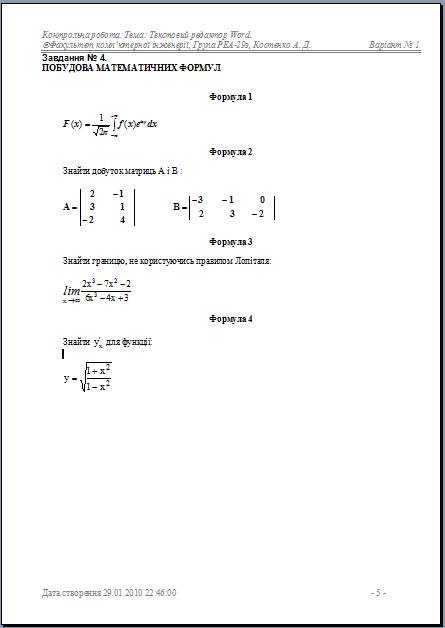 Розбити документ на сторінки так, щоб кожне завдання було розташоване на окремому аркуші.