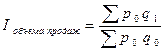 Индекс объема продаж характеризует изменение количества проданных товаров в среднем по нескольким видам в отчетном периоде по сравнению с базисным
