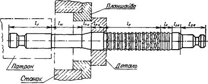 Основная плоскость, перпендикулярная к вектору скорости резания, и плоскость резания взаимно перпендикулярны и перпендикулярны к плоскости чертежа. Для протяжек с прямыми зубьями, перпендикулярными к оси (рис. 41), плоскость чертежа является нормальной секущей плоскостью. У протяжек с наклонным зубом (плоские) или винтовым зубом (круглые) зубья имеют угол наклона главной режущей кромки λ между режущей кромкой и основной плоскостью. Геометрические параметры калибрующих зубьев на рис. 41 обозначены индексом к. Шаг зубьев t, ширина задней поверхности зуба g, глубина h и форма R и r стружечной канавки, а также подъем на зуб sz являются основными элементами конструкции рабочей части протяжки. Они зависят от размеров и формы обработанной поверхности, припуска на обработку, принятой схемы резания, периода стойкости протяжки, обрабатываемого материала, заданного качества обработанной поверхности и других факторов. Параметры протяжки выбираются оптимальными по себестоимости обработки, т. е. такими, когда себестоимость обработки минимальная, что достигается при минимальной длине протяжки, высокой стойкости и большом количестве переточек. Режущая часть протяжек групповой схемы резания дополнительно подразделяется на обдирочную, переходную и чистовую части. На обдирочной и переходной части зубья объединены в группы (секции) одинакового диаметра, а подъем задается на секцию зубьев, больший для обдирочных секций. Чистовые зубья имеют самый малый подъем, причем на каждый зуб. Такой принцип конструирования преследует цель удаления основного припуска минимальным числом зубьев с обеспечением требуемого качества обработанной детали чистовыми зубьями протяжки. Это позволяет сделать протяжку минимальной длины. Диаметр первого режущего зуба равен минимальному диаметру отверстия до протягивания, а диаметр последнего режущего зуба — диаметру калибрующих зубьев протяжки. Число зубьев зависит от припуска на обработку и подъема на зуб. Зубья калибрующей части протяжки не имеют подъема на зуб. Их диаметр должен обеспечить максимально допустимый размер отверстия. Чем меньше шероховатость обработанной поверхности и выше ее точность, тем больше число калибрующих зубьев протяжки. Передняя l пн и задняя l зн направляющие (рис. 42) служат для центрирования и направления протяжки по отверстию детали в момент начала и окончания работы. Форма и поперечные размеры передней направляющей соответствуют форме и минимальным размерам отверстия до обработки. Задняя направляющая чаще всего имеет форму окончательно обработанного отверстия с минимально допустимыми размерами. Хвостовик l х, шейка l ш, переходной конус l пк и задняя замковая часть l зч (рис. 42) являются присоединительной частью прок тяжки. За хвостовик, закрепленный в тяговом патроне станка, протяжку протягивают через обрабатываемое отверстие. Размеры и форма хвостовика зависят от диаметра протяжки и зажимного патрона. Переходный конус облегчает ввод протяжки в отверстие. Длины переходного конуса и шейки выбираются такими, чтобы при положении детали, как показано на рис. 42, обеспечить возможность соединения хвостовика протяжки с патроном протяжного станка. Размеры поперечного сечения шейки должны быть меньше опасного сечения на рабочей части, чтобы в случае разрушения протяжки по присо