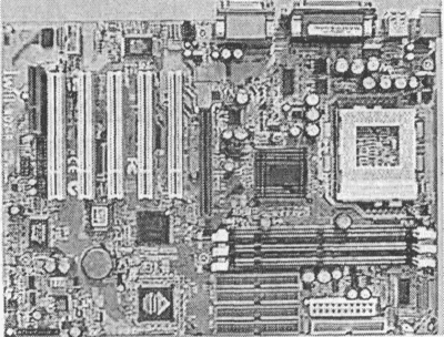 Аппаратная реализация компьютера Современный персональный компьютер может быть реализован в настольном (desktop), портативном (notebook) или карманном (handheld) варианте. Все основные компоненты настольного компьютера находятся внутри системного блока: системная плата с процессором и оперативной памятью, накопители на жестких и гибких дисках, CD-ROM и др. Кроме этого, в системном блоке находится блок питания. Системная плата. Основным аппаратным компонентом компьютера является системная плата (рис. 4.4). На системной плате реализована магистраль обмена информацией, имеются разъемы для установки процессора и оперативной памяти, а также слоты для установки контроллеров внешних устройств.