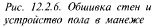 По периметру манежа устанавливают наклонное ограждение (барьер) высотой 1,5 — 2 м из досок (по брусчатому каркасу) с наклоном 30 — 40 см наружу, чтобы лошадь не прижала всадника к стене (рис. 12.2.6). Зеркала на стенах манежа помогают отрабатывать посадку на лошади. Въездные ворота манежа или предманежника устраиваются в расчете на
