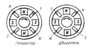 Полярность добавочного полюса в генераторе должна быть такой же, как и у следующего по направлению вращения главного полюса, а в двигателе — как у предшествующего полюса (рис. 27.9).