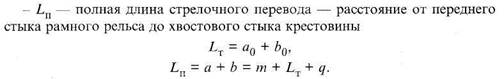 обыкновенными переводами. Поэтому такие стрелочные переводы выгодны в стесненных условиях, особенно на пассажирских станциях. Недостатком таких стрелочных переводов является сложность конструкции и необходимость ограничения скорости движения по ним. Кроме того, при неподвижных сердечниках тупых крестовин не полностью перекрывается контррельсами их вредное пространство, что может вызвать сход подвижного состава. Перекрестный стрелочный перевод состоит из двух острых крестовин с контррельсами, двух тупых крестовин с контррельсами, четырех пар остряков, соединительных рельсов и переводных брусьев. Стрелочные переводы различаются в зависимости от марки крестовины. Применяются следующие марки стрелочных переводов: 1/22, 1/18, 1/11, 1/9, 1/6. Согласно ПТЭ на железных дорогах применяют переводы следующих марок: - на главных путях и приемо-отправочных пассажирских — не круче 1/11, - на приемо-отправочных путях грузового движения — не круче 1/9, а На главных путях станций, где предусмотрен пропуск пассажирских поездов со скоростями 140—200 км/ч, должны укладываться стрелочные переводы типа Р65 марки 1/11, с гибкими остряками и крестовиной с непрерывной поверхностью катания. Стрелочные переводы марки 1/18 и 1/22 допускается предусматривать в трудных условиях в порядке исключения по согласованию с ОАО «РЖД» (при разветвлении главного пути и в путепроводных развязках). Тип рельсов стрелочных переводов зависит от типа рельсов тех путей, на которых уложены стрелочные переводы. Чаще всего они совпадают. Выпускают стрелочные переводы рельсов Р-65, марки 1/11, рельсов Р-65 марки 1/9, рельсов Р-50 марки 1/11 и т.д. Выпускаются стрелочные переводы правые и левые. Стрелочный перевод считается правым, если по нему подвижной состав поворачивает направо от основного пути, левым — если поворот подвижного состава происходит налево. В зависимости от того, как происходит движение по стрелочному переводу, различают противошерстные и пошерстные стрелочные переводы. Это означает, что один и тот же стрелочный перевод может быть и пошерстным и противошерстным. Если движение происходит в остряки, стрелочный перевод — противошерстный, если в крестовину — пошерстный.