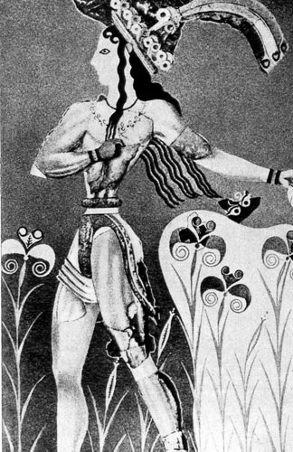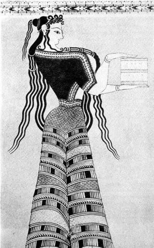 В египетских пирамидах и надгробиях изображены иностранные послы, подносящие правителям Египта богатые дары. В период Нового царства среди посланников других стран появились и послы с острова Крит. Их одежда в корне отличалась от одежды египтян. У них выкроенное и сшитое платье, разделенное на три части — жилет, рукава и юбка, в чем мы видим наследие древних восточных культур. Утонченность египетской моды заменило здесь пестрое и буйное разноцветие красок. Критская мода не знает мягких нюансов египетской моды. С нашей сегодняшней точки зрения, эта мода менее элегантна, она испытала на себе гораздо большее влияние Востока. Как и в Египте, мужчины носили короткий набедренный передник, богато украшенный, а в качестве верхней одежды на плечи они надевали как бы накидку, закрепленную на одном плече застежкой. Волосы по большей части были закрыты шлемом либо шляпой с широкими полями. Любимой обувью были полувысокие богато вышитые сапожки на каблуке. Дополнением к одежде служили драгоценные пояса с золотыми фигурками, к которым были прикреплены инкрустированные кинжалы. Для одежды членов царского рода были характерны всевозможные ожерелья, перстни и браслеты. Женщины имели в этой культуре бесспорное преимущество. Символом всей минойской культуры является богиня со змеями, маленькая фаянсовая фигурка, одетая в модное платье того времени с обнаженной грудью. Другой символ той культуры - «Парижанка». Так называют изображение сильно накрашенной девушки на одной из настенных росписей в Кноссе (2-е тысячелетие до н.э.), производящей впечатление современной девушки большого города. Микенская мода вложила в женскую одежду понятие так называемого женского очарования — подчеркивание бедер и таза, тонкой талии, бюста. Она создала женскую моду с точки зрения натуралистического взгляда на мир, сточки зрения воплощения в расцветке тканей буйной растительности — лиан и вьющихся растений — и морских волн, что в полной мере получило свое дальнейшее развитие в возникшем много позднее модерне. Для женской одежды характерна широкая юбка, как кринолиновая, обычно украшенная воланами, которая дополнена маленьким фартучком и жилетом с короткими, очень тесными рукавами, с безмерно глубоким вырезом, обнажающим грудь. Расширенная книзу юбка, по мнению одних, скорее всего поддерживается обручами, другие утверждают, что женщины той культуры носили не юбки, а как бы калготы, которые «ожили» в нашу эпоху. Эта юбка, или юбка-калготы, дополняется прилегающей, углом вырезанной спереди, ещё более короткой верхней юбкой, что-то среднее между панцирем и полутурнюром. Юбку дополняет жилет, как бы зашнурованный корсет, обнажающий бюст. Критские женщины носили много украшений и драгоценностей, не только перстни, ожерелья и серьги, но и диадемы, красивые застежки, золотые подвески, шпильки, поддерживающие прическу и платье. Жители Крита в совершенстве владели искусством обработки драгоценных металлов, они отделывали драгоценности гравировкой и чеканкой. Микенская мода в дальнейшем стала основой для возникновения многих модных течений. Она остроумно была названа модой первых кринолинов. Этот микенский стиль появился в натуралистической моде девятнадцатого столетия (в конце века). И в наше время из микенской модной «мешанины» выбирается та или другая дета