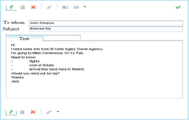 1. You ordered twenty color cartridges for your printer. Unfortunately, you received black cartridges instead. Call the supplier and ask them to correct the order. 2. You ask your boss if you can have the morning off next Friday because you need to sign some papers at the bank. 3. You ask for a return train ticket to Oxford at the ticket office. 4. Your colleague keeps forgetting to finish the report you have both been working on. It needs to be sent to head office today. You call him to help him remember.