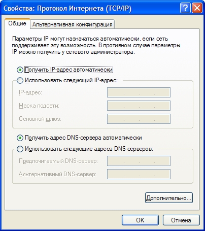 Здесь указана настройка по умолчанию - получать адрес автоматически (от DHCP-сервера). Кроме того, DNS-сервера получаются автоматически, хотя иногда имеет смысл и ввести их вручную, чтобы пользоваться альтернативными DNS-серверами, а не теми, что предложил провайдер. Маловероятно, что вам понадобятся "дополнительные настройки" (кнопка снизу), а вот альтернативная конфигурация - вещь интересная. Если вы часто используете свой ноутбук в двух сетях, в одной из которых есть DHCP-сервер, а в другой нужно прописывать адрес вручную, то имеет смысл прописать этот адрес именно в альтернативной конфигурации. Не найдя DHCP-сервер за некоторое время система сама станет использовать альтернативные настройки. При выборе " получить адрес автоматически " и подключении к сети компьютер посылает в сеть запрос с просьбой выдать ему IP-адрес по специальном протоколу, DHCP (Dynamic Host Configuration Protocol). Если в сети нет ни одного DHCP сервера, то через некоторое время компьютер сам себе присваивает адрес 169.254.*.*, а рядом с иконкой подключения к сети появляется сообщение, что подключение к интернету ограничено - пользоваться интернетом в таком случае не получится. Если же сервер имеется, то компьютеру "выдают адрес" (и, на самом деле, не только адрес, но и маску и адреса серверов DNS). Как же сервер выбирает, какой адрес присвоить компьютеру? Во-первых, на сервере имеется четко определенный диапазон допустимых адресов. Например, у сервера может быть адрес 192.168.1.1, а выдавать он будет адреса от 192.168.1.2 до 192.168.1.254. Вы можете получить как случайный адрес из этого диапазона (причем, выданный на определенный период времени), так и четко определенный адрес. Естественный вопрос - как может определить сервер, кто вы, чтобы дать какой-то предопределенный адрес? Ответ: по вашему MAC - адресу (Media Access Control). Этот адрес зашит в вашей сетевой карте, и, наверное, при первом подключении к провайдеру был зафиксирован их оборудованием. Однако, существуют программы, способные изменять MAC-адреса (под Линуксом и программ не нужно, под Windows иногда можно поменять адрес в настройках, но не все сетевые карты это поддерживают, а также это невозможно под Home Edition/). Но программой это точно сделать можно (например SMAC). Что может дать смена MAC? Например, возможность поочередно подключать два компьютера к сети, не меняя на них настроек, в случае, когда провайдер проверяет MAC подключенного компьютера. Или возможность подключиться к сети, к которой вы и не должны бы иметь прав подключиться - вы можете сымитировать другого пользователя.