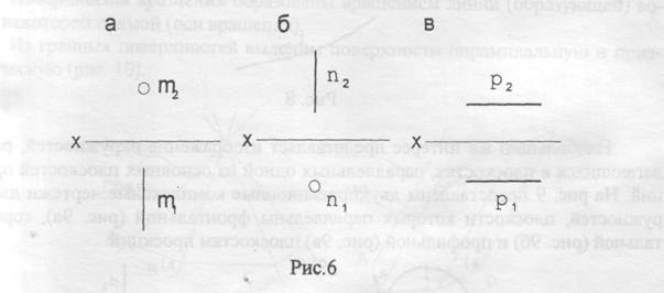 Поскольку проецирующая прямая перпендикулярна к какой-либо из плоскостей проекций, проекция прямой на ту плоскость проекций, к которой она перпендикулярна, представляет собой точку (главная проекция). Среди проецирующих прямых (рис. 6) различают: - фронтально-проецирующие (рис. 6а); - горизонтально-проецирующие (рис. 66); - профильно-проецирующие (рис. 6в).