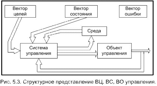 По отношению к векторам целей можно определить следующие понятия: - объективный вектор целей. Это вектор целей, предписанный иерархически высшим управлением. Он проявляется в поведении его носителя (т.е. в изменении его вектора состояния) в течение продолжительного времени. - потенциальный вектор целей, отражающий объективные возможности, не используемые по субъективным причинам. По отношению к управлению со стороны иерархически высшего управления потенциальный вектор целей – вектор ошибки самоуправления; - идентифицированный (выявленный в наблюдениях) вектор целей – составляющая часть объективного (или потенциального) вектора целей. Это понятие – субъективное. - автоидентифицированный субъективный вектор целей, возникающий в результате попытки субъекта управления идентифицировать свой собственный объективный и (или) потенциальный вектор целей.