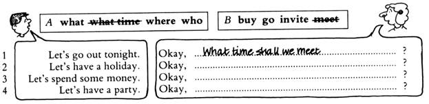 Ex. 118. Write sentences with Shall we...? Choose words from box A and box B.