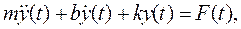 где первое слагаемое в левой части уравнения соответствует второму закону Ньютона для движения тела массой m, второе слагаемое описывает действие демпфера, а третье – пружины. В общем виде это линейное дифференциальное уравнение 2-го порядка можно записать: