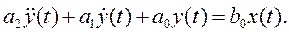 Обозначив LC=a2, RC=a1, 1= a0, C=b0, dE(t)/dt=x(t), получим:
