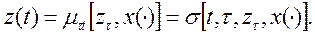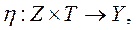 где Z – множество всех значений состояния системы; T – множество моментов времени; С помощью этого отображения по вектору состояния в момент времени t можно определить значение вектора выходной величины в этот же момент времени. Это отображение называется отображением выхода. Явная зависимость h от t введена для учета возможности изменения зависимости выхода от состояния с течением времени. Для полноты построения модели системы нужно еще описать связь между вектором входа x(t) и вектором состояния z(t). Для этого вводится параметрическое семейство отображений