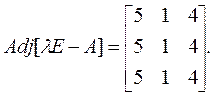 Чтобы найти модальную матрицу, необходимо в присоединенную матрицу подставить значение собственных (характеристических) чисел. При λ1 = 1присоединенная матрица равна
