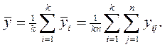 Факторная дисперсия наиболее заметна при анализе средних значений на i -м уровне фактора, а остаточная дисперсия (дисперсия случайности) для средних значений в n раз меньше, чем для отдельных измерений, поэтому можно найти более точную оценку выборочной дисперсии: