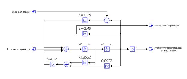 Рис. 10.6. Модель САУ гашением колебаний груза на подвесе.