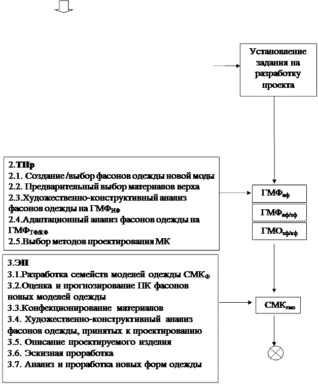 Рисунок 1 – Обобщенная схема последовательности выполнения работ на различных стадиях процесса проектирования одежды